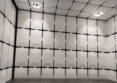 ? 吸波結(jié)構(gòu):六面均由高性能EPP吸波材料(可根據(jù)需要另行選擇)組成;地面加裝透波走道板。墻面吸波材料上可以覆蓋白色反光板,用于美化內(nèi)部環(huán)境和增加亮度。
